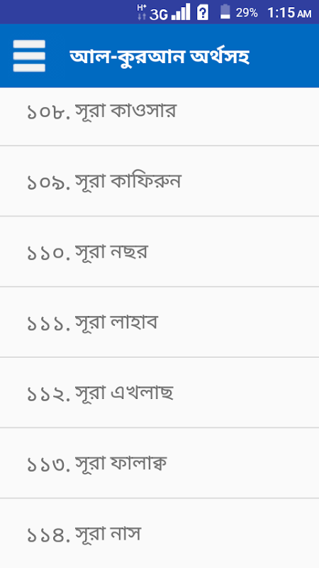 আল মাউন, আল কাওসার, আল কাফিরুন, আন নাসর, আল লাহাব, আল ইখলাস,