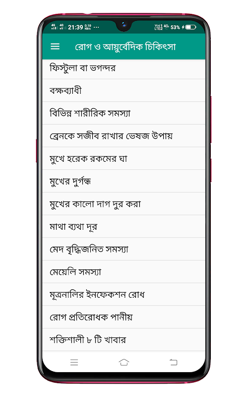 'আয়ুর্বেদিক চিকিৎসা ভেষজ উদ্ভিদ' অ্যাপটিতে নিম্নলিখিত বিষয়গুলি রয়েছে।