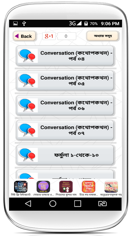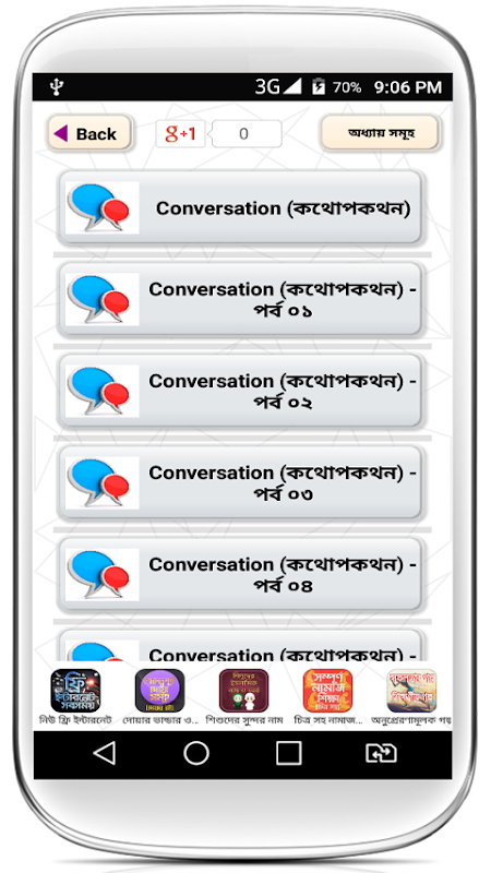 “ইংরেজিতে কথোপকথন ১০০+ ফর্মুলা” । অ্যাপটি ব্যবহার করলে আপনি সহজে ইংরেজিতে কথোপকথন বা ইংরেজিতে কথা বলতে পারবেন।