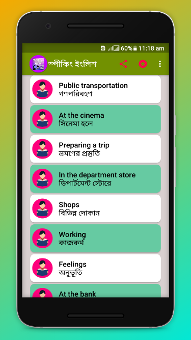 থেকে ইংরেজি অনুবাদ ইংরেজি সহজ করে শিখতে পারবো।উচ্চারণ সহ ইংরেজি শব্দ শিখুন, ইংরেজি শব্দের বাংলা অর্থ ও উচ্চারণ Vocabulary app গুলো আপনাদের উপকারে আসবে। ইংরেজি উচ্চারণ, ইংরেজি উচ্চারণ শিখুন সহজেই এই অ্যাপটির সাহায্যে। ইংরেজি উচ্চারণ শেখার নিয়ম জানতে পারবেন। এ ছাড়া idoms and phrases app bangla এবং dictionary ব্যবহার করে ইংরেজি কে বাংলা বাক্যে রূপান্তর করা যায়। বাংলা থেকে ইংরেজি voice translator মাধ্যমে আমারা ইংরেজি শিখতে পারি।এ অ্যাপ ব্যবহার করে ইংরেজি বাক্য গুলো সঠিক উচ্চারণ জানতে পারবেন।এবং কোথায় কি ইংরেজি বলবেন। কখন কার সাথে ইংরেজিতে কথা বলবনে তা শিখবেন এখানে।ইংরেজি শেখা নিয়ে আমাদের আরও অ্যাপ ডাউনলোড করুন।বাংলা বাক্যের ইংরেজি শিখতে হলে আমাদের সবার এখন english dictionary english bangla voice translator থেকে সহজে আপনারা বাংলা থেকে ইংরেজি অনুবাদ শিখতে পারবেন যার কারনে ৩০ দিন ইংরজী শিখুন বই আপনার পড়তে সহজ হয়ে যাবে ৩০ দিনে ইংরেজি গ্রামার শিখুন পড়লে আপনি অনর্গল ইংরেজিতে কথা বলতে ইংরেজি থেকে বাংলা অনুবাদ লিখতেও পারবেন সহজেই ইংরেজি শেখার বই ও আপনাদের জন্য ইংলিশ টু বাংলা ডিকশনারী আছে এগুলো মাধ্যমেও পারবেন সূত্রের সাহায্যে ইংরেজি শেখা তো আরও সহজ চলুন শুরু করি ইংরেজি শব্দের বাংলা অর্থ ইংরেজি শেখার কোর্স যা আমাদের সবার জন্য খুবই দরকার ১৫ দিনে ইংরেজি শিখুন আগে শিখতে হলে আমাদের english to bangla translation শিখা খুবই জরুরি বিষয় english word to bangla meaning যদি জানতে ও শিখতে চান english word to bangla spelling জানতে হবে তবে আর দেরি কেন ইংরেজি থেকে বাংলা অনুবাদ বাংলা থেকে ইংরেজি অনুবাদ শিখে আজই আপনার বন্ধু বান্ধব সবার সাথে ইংরেজি থেকে বাংলা কথা বলে অনুবাদ ৩০ দিনে ইংরেজী শিখুন ঘরে বসে আজই শিখে ফেলুন খুবই কম সময়ে ইংরেজি শব্দার্থ তাছাড়া ইংরেজি শব্দ বাংলা অর্থ সম্পর্কে আমাদের অনেক জরুরি বিষয় জানতে word meaning গুলো আমাদের