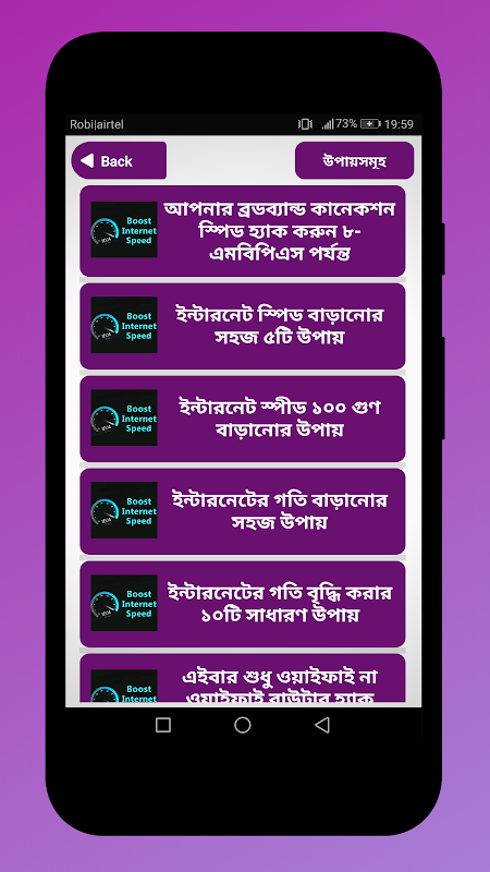 ইন্টারনেট স্পিড স্লো - এই সমস্যা প্রায় সবারই হয়। বিশেষ করে যারা মোবাইল ইন্টারনেট ব্যবহার করেন অর্থাৎ ৩জি বা ৪জি চালান তারা সবাই আশানুরুপ মোবাইলের ইন্টারনেটে স্পিড পান না। আবার অনেকে ব্রডব্যান্ড বা ওয়াইফাই ব্যবহার করলেও স্পিড কম হওয়ায় ইন্টারনেটের গতি বৃদ্ধি করতে চান। নেট স্পিড বা ইন্টেরনেটের স্পীড বাড়ানোর বেশ কিছু কৌশল আছে যা এই অ্যাপে আলোচনা করা হয়েছে।