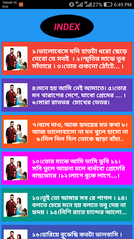 অ্যাপসটির মাঝে যে সব গান গুলো আপনি পাবেন তা হলো: