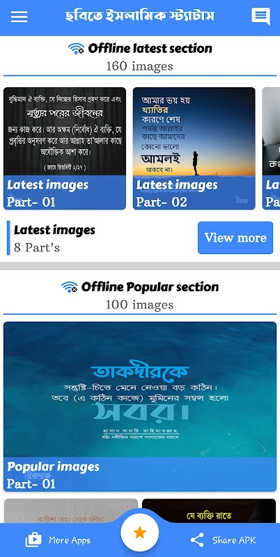 Many people are looking for islamic pictures on various social media to share islamic status & quotes with image, they can post our best image quotes & sayings. Here feeling quotes images are highlighted with Islamic status with picture. Islamic attitude quotes and status and picture are arranged in such a way that you can easily share quote as a text or picture. Here you will find Daily Motivational Quotes and Islamic latest status messages 2021 which can be shared among friends with Best Quotes 2020 Offline with iamge. Islamic status picture bangla some are big, some are islamic image quotes are small, all the statuses are arranged in such a way share story with in islamic image can be done. Best islamik sms attract more people and get the most popularity. In order to fully verify the islamic status app, the entire Islamic Bangla SMS may be read by others. I hope this islamic photo apps is very helpful any users for post and share.