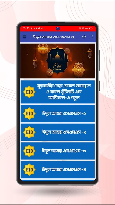 ঈদ এসএমএস - Eid SMS 2025 App টি সকল ধরনের ঈদ শুভেচ্ছা দিয়ে সাজানো হয়েছে।