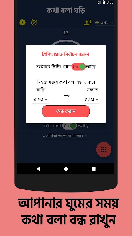 Talking Clock - Bangla Talking Clock / Speaking Clock / Time Talking Clock or Speaking Clock app you can specify your sleep time - at that time it will stop talking.