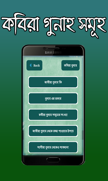 ‘‘কবিরা গুনাহ সমূহ-Kobirah gunah somuho” এ্যাপসটিতে কবিরা গুনাহ গুলো দেয়া হয়েছে