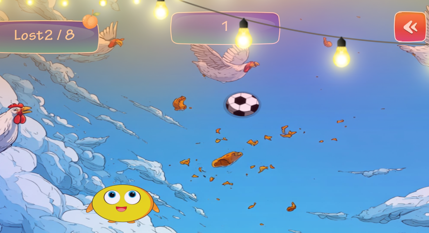Bird Caught: Food Game is a light and entertaining tap game where you control a cute bird flying through the sky, catching falling food while avoiding traps!