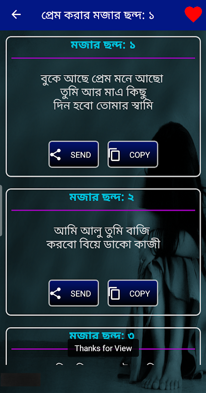 আশা করি আপনাদের অ্যাপসটি পড়ে অনেক ভালো লাগবে । আপনার মনের কষ্ট গুলো দূর করার জন্য অ্যাপসটি ভালো কাজ করবে ।