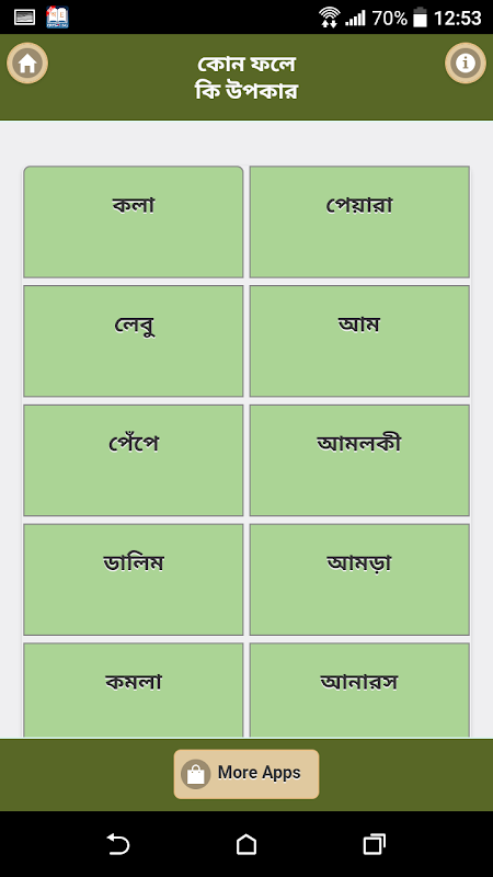 ফল আল্লাহ তায়ালার এক অশেষ নিয়ামত। পৃথিবীতে মহান রাব্বুল আলামিন আমাদের জন্য অনেক ফল্মুল পাঠিয়েছেন। এবং প্রত্যেক ফলে রয়েছে আলাদা আলাদা গুনাগুন। যা আমাদের মানব দেহের জন্য বিভিন্ন ভাবে উপকার করে থাকে। তাই আমাদের প্রত্যেকের জানা দরকার কোন ফলে কি পুষ্টিগুণ রয়েছে। যাতে করে আমরা ইচ্ছা অনুযায়ী বুঝে শুনে প্রয়োজনীয় ফল্মুল খেতে পারি। আশা করি আমাদের এই এপস টি আপনাদের কাজে দিবে।