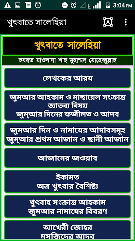 আসসলামু আলাইকুম ! প্রিম ইমাম সাহেব গন! গুগল প্লে স্টোরে অনেক খুৎবার কিতাব পাওয়া যায়, কিন্তু বাংলাদেশের সর্বাধিক পরিচিত ছারছীনা প্রকাশনী হইতে প্রকাশিত "খুৎবাতে সালেহিয়া " কিতাবটি আমরা অনেকেই খোজ করে থাকি, কিন্তু পাই না।