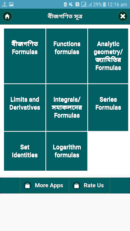 গণিত শিক্ষার জন্য যা যা সূত্র দরকার তা সব কিছৃ রয়েছে এই অ্যাপটিতে