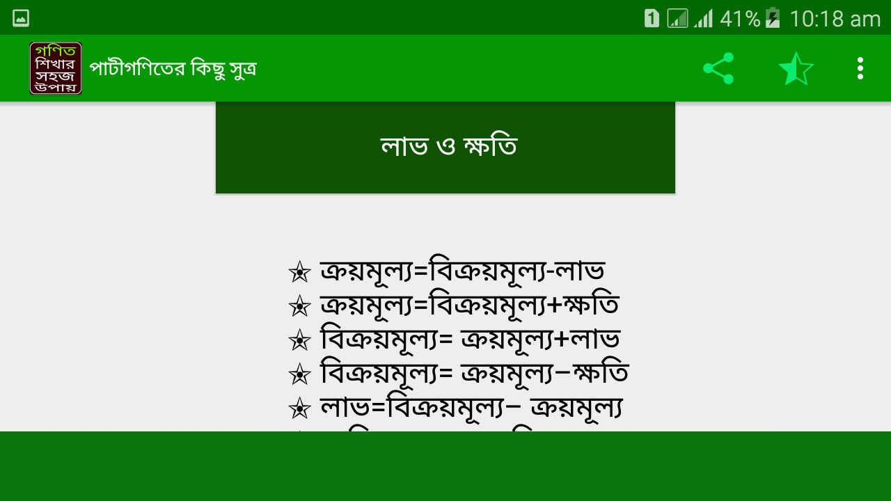 bcs math shortcut which is Basic math bangla related Gonit sutro app is brought to you by Green app studio. This app is specially designed for bcs math preparation and job seekers. From various Gonit books we collect all the common and important formulas including algebra and geometry. We find out the best technique and made this Mojar gonit application. It also helps to all students who are going to university admission (dhaka university, Buet,rajshahi University etc) test . This bcs math solution makes you confident and we are sure after using this app you will love to math problem solver in bangla. We try to cover all feature like Basic math bangla to Higher math bangla using various technique of Gonit sutro so that we you solve all the problems easily. So why you are waiting for start downloading bcs math apps and enjoy the Mojar gonit. In this app we discuss everything step by step . So seat tight and start solving. If you like our app then don’t forget to share it with your friends and don’t forget to review Basic math bangla.