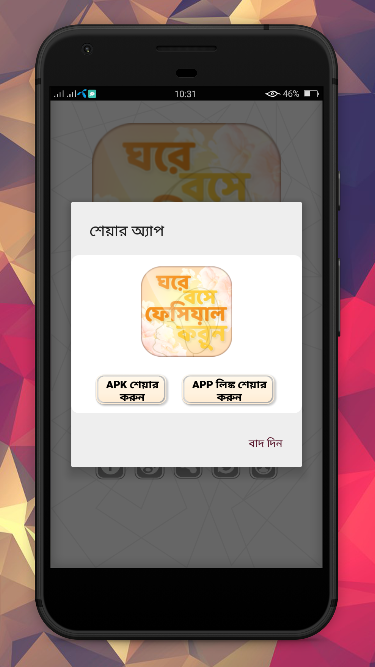সারাদিন কাজ করার পর, বাহিরে থাকার পর চেহারা মলীন হয়ে পরে,তাই আমাদের নিয়মিত চেহারার যত্ন নেওয়া প্রয়োজন চেহারর যত্নর অন্যতম উপায় ফেসিয়াল কিন্তু বাজারের পার্লার গুলতে ফেসিয়াল করাতে অনেক টাকা ব্যয় হয়।তাই আপনাদের সুবিধার জন্য নিয়ে এসেছি ঘরে বসে ফেসিয়াল করুন এই অ্যাপটি।এখন আপনাদের বাহিরে গিয়ে অনেক টাকা ব্যয় করা লাগবে না ঘরে বসেই সহজে নিজেই নিজের ফেসিয়াল করে নিতে পারবেন।আমাদের এই অ্যাপে ঘরে বসে ফেসিয়াল করার সকল টিপস বাংলায় পাওয়া যাবে এছারাও আছে ত্বক যত্ন, ত্বক যত্নর টিপস,ত্বকের রোগের সমাধান,ফর্শা হয়ার টিপস,ফর্শা হওয়ার সহজ উপায়,ঘরে বসে ফেসিয়াল ,ঘরে বসে রূপচর্চা,ফেসিয়াল ,ফেসিয়াল টিপস,ত্বকের যত্ন,ত্বক ফর্শা করার টিপস,ত্বক ফর্শা করার টিপস স্কিন কেয়ার,ত্বকের রোগ,ফর্শা হওয়ার সহজ উপায়,ফর্শা হওয়ার টিপস।