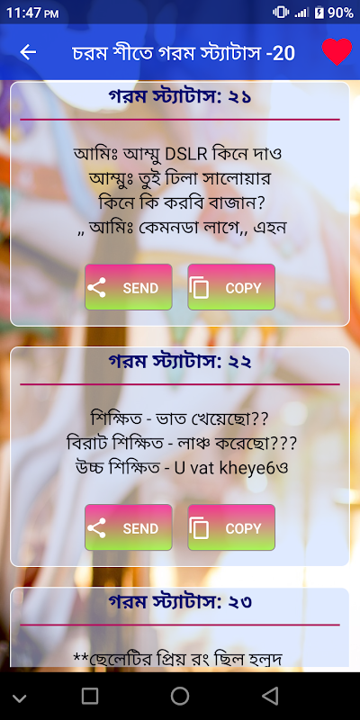 গরম SMS ও স্ট্যাটাস অ্যাপটি অনেক বেশি SMS ও স্ট্যাটাস মজার কালেকশন রয়েছে ।