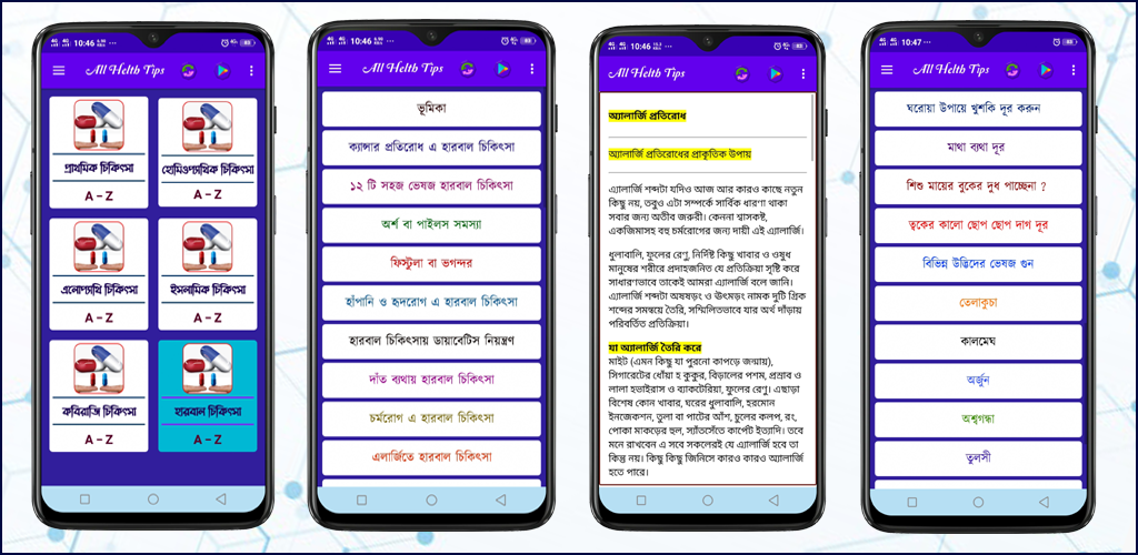 প্রাথমিক চিকিৎসা, হোমিওপ্যাথিক চিকিৎসা, এলোপ্যাথি চিকিৎসা, ইসলামিক চিকিৎসা,