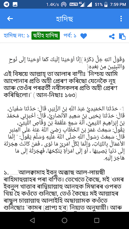 অসমীয়া বুখাৰীৰ প্ৰথম খণ্ডৰ হাদীছসমূহ।