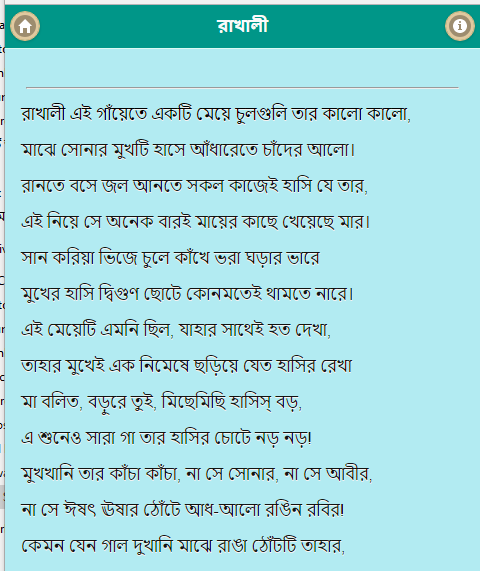 আশাকরি কবিতাগুলো পড়ে অনেক উপকৃত হবেন। অনেকেই মনের আনন্দে কবিতা পড়তে পছন্দ করেন। এই অ্যাপসটিতে পল্লীকবি জসিম উদ্দিনের ১১টি কবিতা দেওয়া আছে।