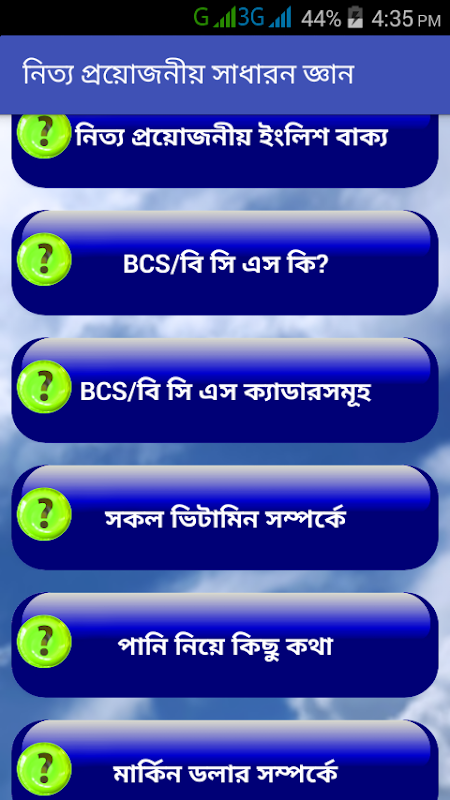 This is an uncommon and very helpful general knowledge app in Bangladesh. We provide best quality knowledge and different kinds of general knowledge including BCS, Public University Admission, Bank Job, Primary Teacher Job Admission, Company Job admission, BCS Viva knowledge, Current affairs, Bangladesh and International General knowledge, Computer related general knowledge, Unknown general knowledge and many many important information and helpful to spend you leisure time with acquiring knowledge. sadharon gan.