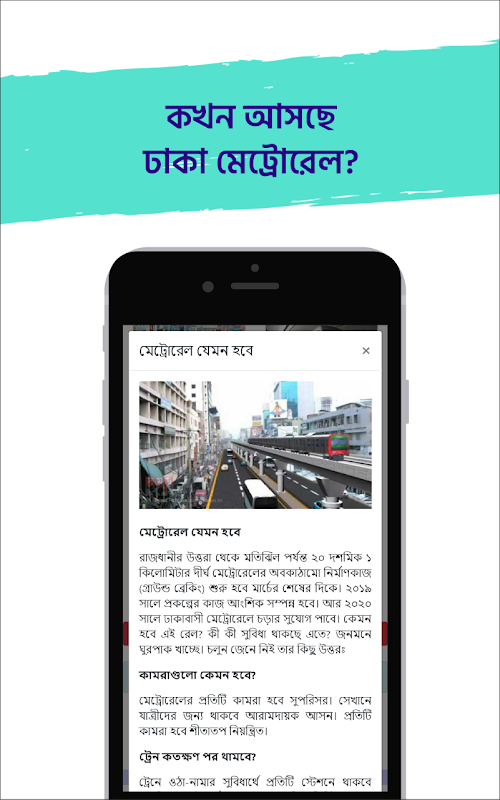 ঢাকা মেট্রোরেল এর রুট, ভাড়া আর অন্যান্য তথ্য জানাতে এই অ্যাপ।