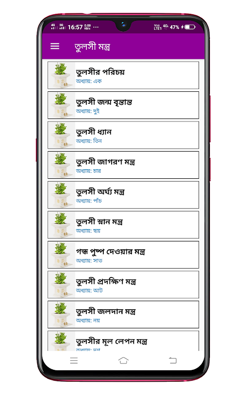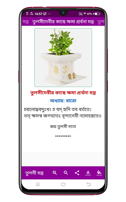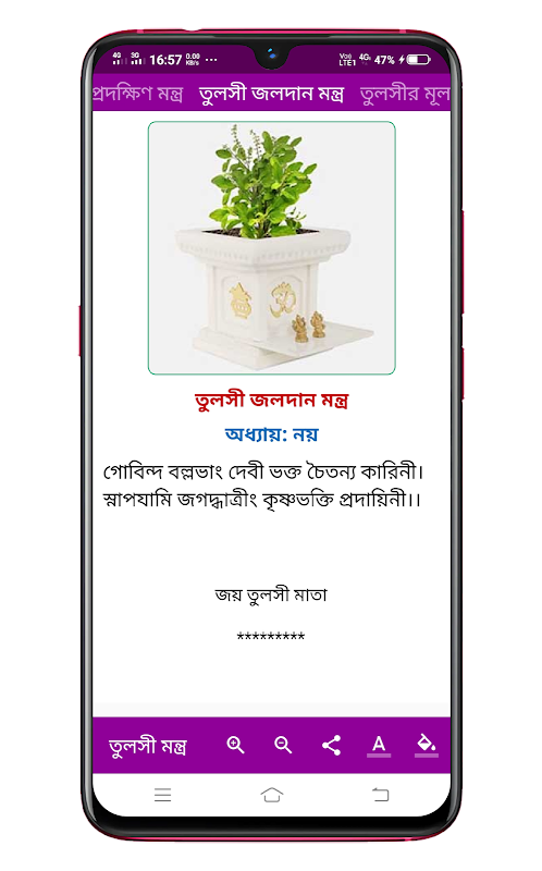 তুলসী মন্ত্র Tulsi Mantra Puja - অ্যাপটিতে নিম্নলিখিত বিষয়গুলি রয়েছে।