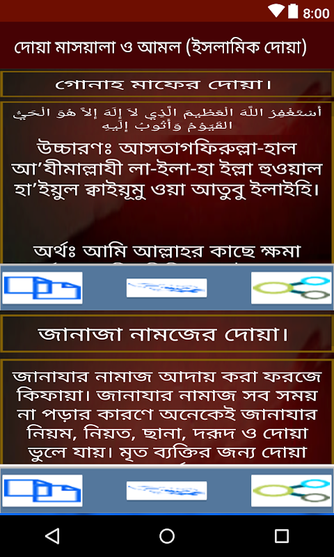 এছাড়াও আমরা নিয়মিত বিভিন্ন ধরনের দোয়া সংযোজন করতে থাকব।আশা করি অ্যাপ্লিকেশনটি আপনাদের অনেক ভাল লাগবে।