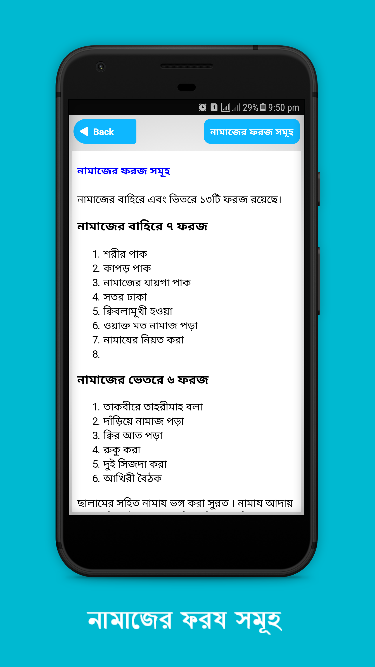 তাই পাঁচ ওয়াক্ত নামাজ আদায় করুন। অজু নামাজের চাবি আর নামাজ হল বেহেশতের চাবি, এই অ্যাপ্লিকেশনের মধ্যে অজু সম্পর্কেও আলোচনা করা হয়েছে। মোট কথা হল নামাজ আদায় করতে যা যা দরকার বা প্রয়োজন সব বিষয় নিয়ে আলোচনা করা হয়েছে।