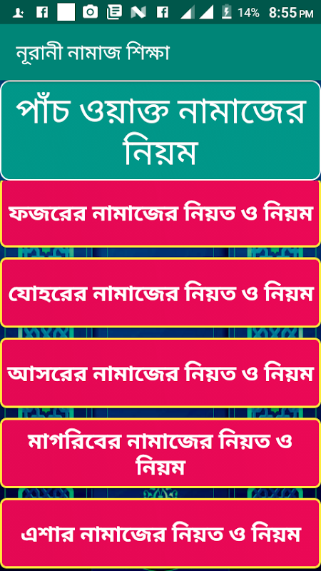 নামাজের নিয়ম ও গুরুত্বপূর্ণ নামাজের দোয়া ও সূরা সমূহ নিয়ে আমাদের ডেভলপার টীম নামাজ শিক্ষা—সূরা ও দোয়া শির্শক এই শিক্ষামূলক অ্যাপটি তৈরি করেছেন।