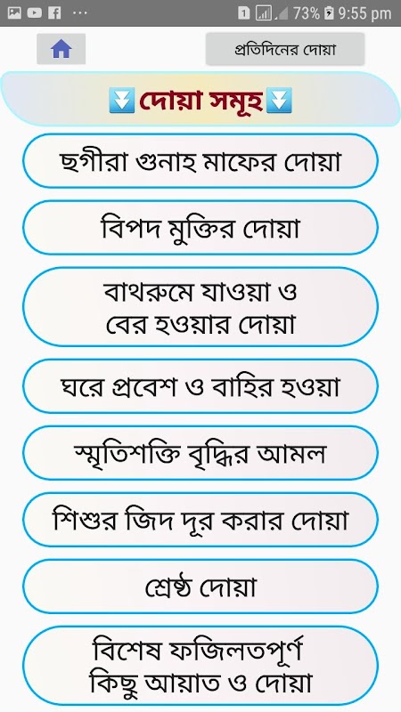 The daily prayer app is arranged with Arabic pronunciation, Bengali meaning and virtues. Here are all the necessary prayers and deeds, from the time of liberation from danger to the time of getting a devout wife and the process of increasing one's sustenance.