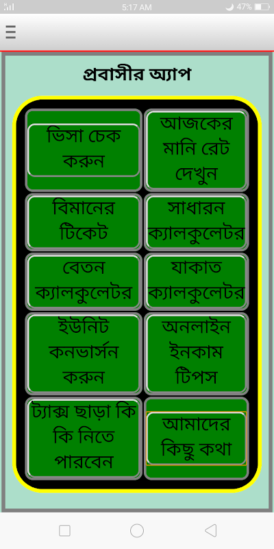 এই অ্যাপ টি মূলত প্রবাসী বাংলাদেশি ভাই /বোনদের জন্য তৈরি করা হয়েছে। প্রবাসীর অ্যাপে আপনি আপনার প্রয়োজনীয় কাজ সহজেই করে নিতে পারেন।