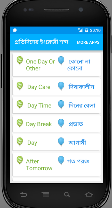 প্রতিদিনের প্রয়োজনীয় শব্দগুলোর ইংরেজী এবং অর্থ নিয়ে দারুন অ্যাপ।