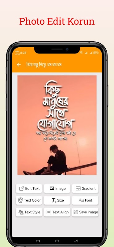 আপনার পছন্দমত ছবি ডিজাইন করতে পারবেন। এডিট বাটনে ক্লিক করলে যে বিষয়গুলো পাবেন - Edit Text, Image upload, Gradient, Text Color, Size, Font, Text Style, Text Align, Save image ইত্যাদি।