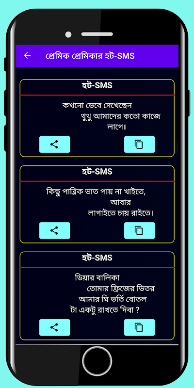 প্রেমিক প্রেমিকার হট - SMS অ্যাপসটি থেকে পাবেন রোমান্টিক সকল ধরনের এস এম এস। ভালোবাসার রোমান্টিক কথা উক্তি । প্রেমিকাকে খুশি করার সকল ধরনে ছোট বড় মজার এসএমএস। আশা করি অ্যাপসটি আপনাদের ভালো লাগবে।