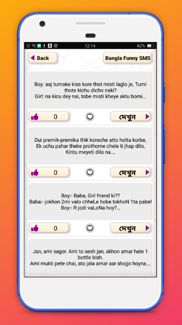 The app is sorted with funny SMS, New Year, Eid, Pahela Baishakh, Happy Morning, Anger Anurag, Mind melting, Missed messages and some funny jokes. Facebook trolls, funny jokes, funny status apps