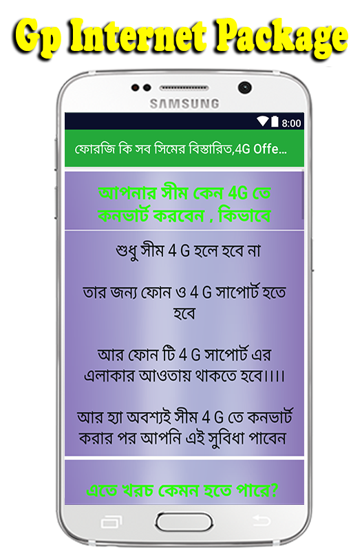 ফোরজি কি সব সিমের বিস্তারিত,4G Offer,4G Data Pack APK Information