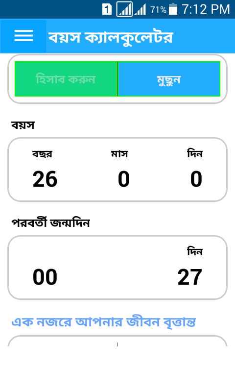 Very easy to use and handy to calculate your age very concisely within a second. bangla age calculator application is very fast and lucrative UI build design android apk.This apk is use not only bangla language but also English language.Now, It's hassle free to find your age
