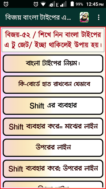 বাংলা টাইপ শিখুন(বিজয়-৫২)দিয়ে APK Information