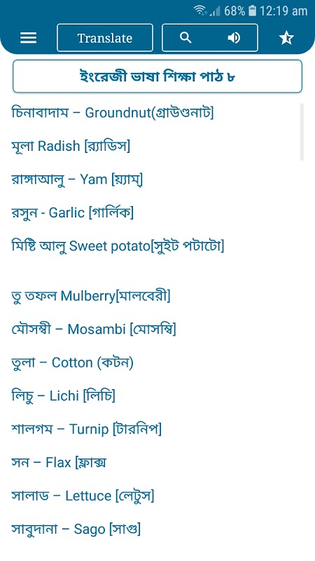 Bengali to English and English to Bengali translations are provided and if you want, you can translate any English or Bengali word of your choice and learn.