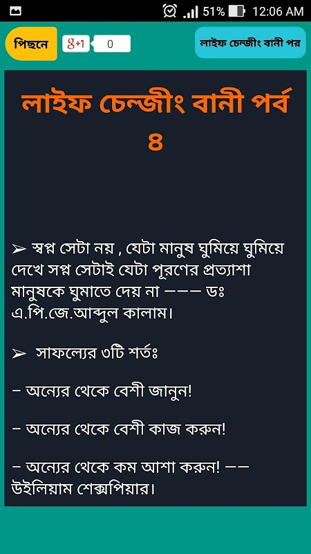 We are here to give you famous quotes of great man. Those who are always remembered all the people all around the world. We collected famous quotes from 100 great people. In this app all these famous person quote bangla . So you have to know bangla for read this quotes app. This quotes app will give your 1000+ famous quotes.