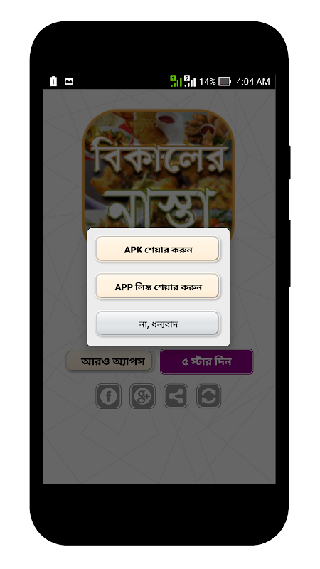 বিকালের নাস্তার রেসিপি ( nasta recipe bangla ) নিয়ে আমাদের এই bikaler nasta অ্যাপটি। বিকালের নাস্তা / nasta recipe বিভিন্ন রকম ভাবে করতে আমরা পছন্দ করি। নাস্তার রেসিপি অ্যাপটিতে বিভিন্ন রকমের নাস্তা বানানোর প্রক্রিয়া ও উপকরন সর্ম্পকে বলা হয়েছে। নাস্তা রেসিপি আপনাদের নাস্ত সর্ম্পকে ভালো আইডিয়া প্রদান করবে। সকালের নাস্তা নিয়ে আমাদের অ্যাপ রয়েছে আপনারা সেটা ডাউনলোড করে নিতে পারেন।