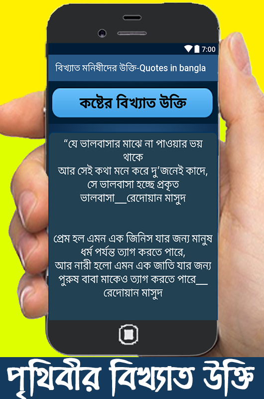 এই অ্যাপ এ বিখ্যাত ব্যাক্তিদের এবং মনিষীদের পৃথিবীখ্যাত সব সেরা সেরা উক্তি আছে।