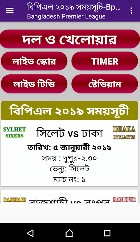 বিপিএল সময়গনণা ও সূচী ২০১৯ APK Information