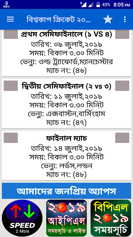বিশ্বকাপ ক্রিকেট ২০১৯ সময়সূচি APK Information