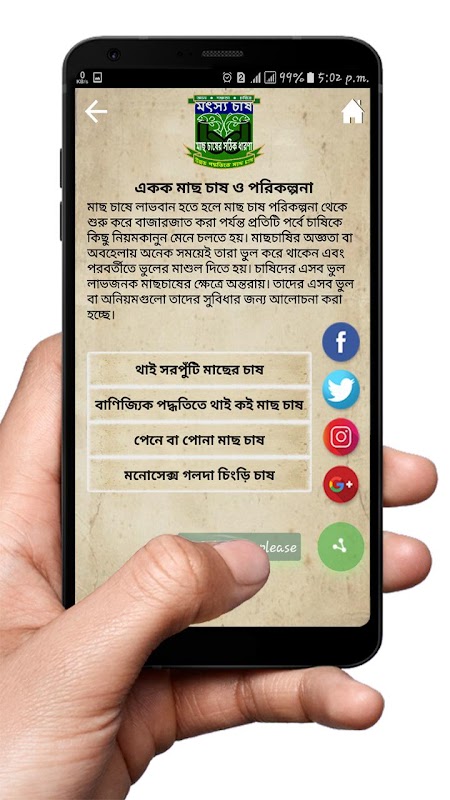 মাছ চাষ পদ্ধতি, মাছ চাষের র্পূনাঙ্গ পদ্ধতি বা সঠিক পদ্ধতিতে মাছ চাষ নিয়ে আমাদের এই অ্যাপ , মাছ চাষ অথবা fish farming advice নিয়ে হাজির হলাম আপনাদের কাছে।