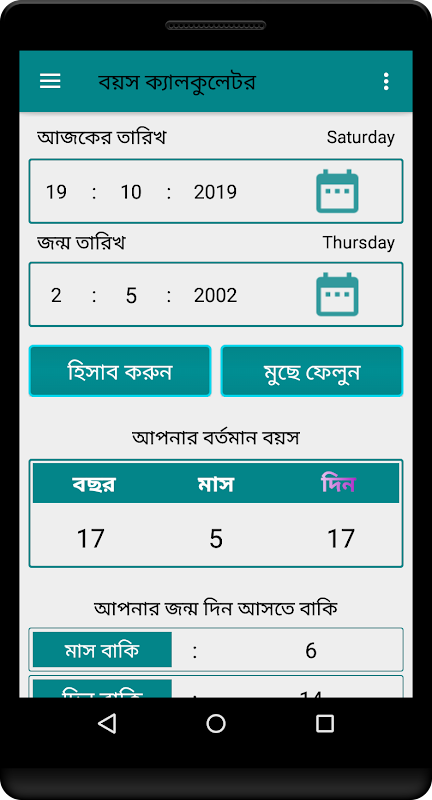• বয়স ক্যালকুলেটর ২০২০ - Age Calculator Bangla 2020 screenshot 2