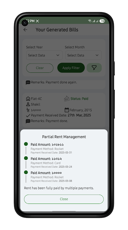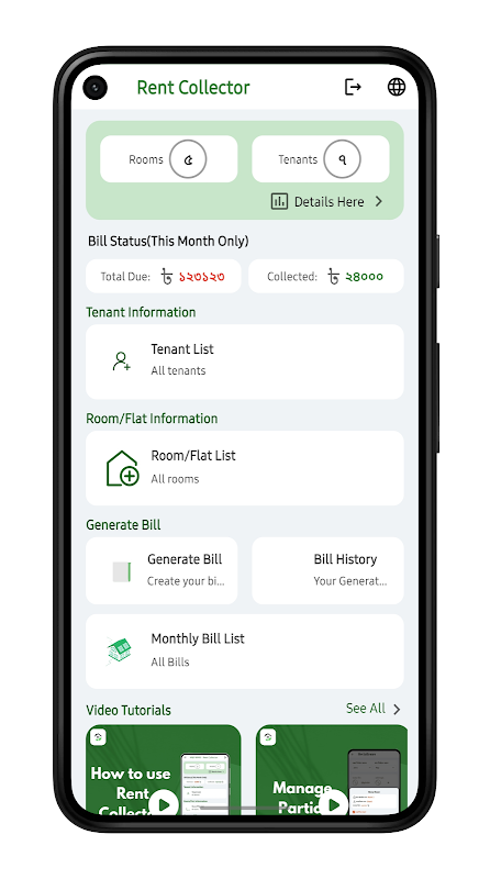 ভাড়া আদায় - Rent Collector এই এপ্লিকেশন টা দিয়ে একজন বাড়ির মালিক তার কত টাকা ভাড়া উঠলো, কোন ভাড়াটিয়া ভাড়া দিলো না , কোন মাস এ কোন ভাড়াটিয়া বাসা ভাড়া দিলো না এমন সব হিসাব পরিচালনা করতে পারবে |