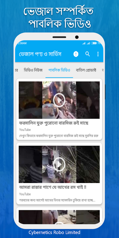 Besides, due to the good products in the market as well as many adulterated goods and services, it is very important for us to know about the latest list of adulterated products and information about the news. It is difficult to find out from various news agencies or government agencies, but when buying the product, it is difficult to find out from it. Through this app, you can easily find news related to the adulterated product, videos that you can filter according to your preferences. If you want to know the news of a particular product, you can search.