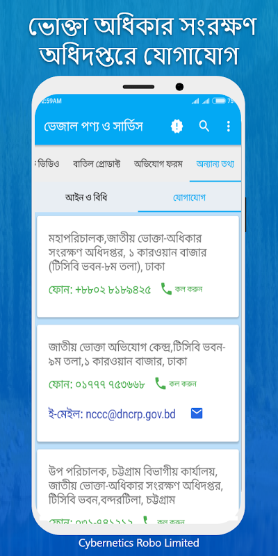 To help you, "Cybernetics Robo Limited" has come up with Mobile Apps "Various Products and Services". Now do not have to be confused with the time of need, how to complain. Or, do not be harassed about collecting phone or email of the Department of Consumer Rights Protection. Just keep this little app on your mobile.