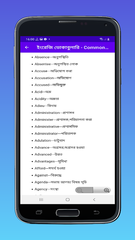 আমাদের ইংরেজি ভোকাবুলারি অ্যাপটি ব্যবহার করে আপনি সহজেই প্রয়োজনীয় অনেক ইংরেজি শব্দের অর্থ জানতে পারবেন আর আপনার শব্দ ভাণ্ডার বাড়াতে বিশেষ সহায়তা করবে।