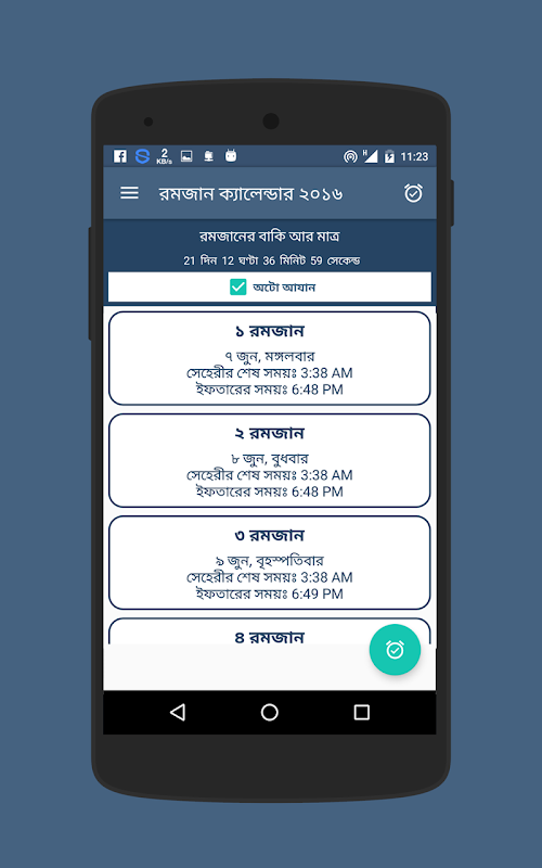 # অটোমেটিক এলার্ম অ্যাড করা হয়েছে... যার মাধ্যমে আপনি সময় মত সেহেরীর জন্য ঘুম থেকে জাগতে পারবেন।