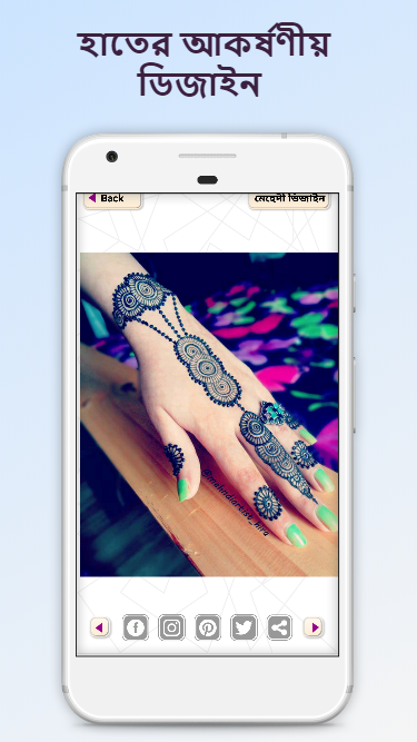 আবার অনেক সময় দেখা যায় অনেকেই মেহেদী ডিজাইনের জন্য বিভিন্ন বই ক্রয় করেন । কিন্তু আমাদের এই মেহেদী ডিজাইন অ্যাপ্লিকেশনটি ব্যাবহার করলে খুব সহজেই সকল ধরনের এক্সক্লুসিভ মেহেদী ডিজাইন গুলো একদম হাতের নাগালে পেয়ে যাবেন। যা আপনার মেহেদী ডিজাইন নিয়ে ভাবনা দূর করবে।